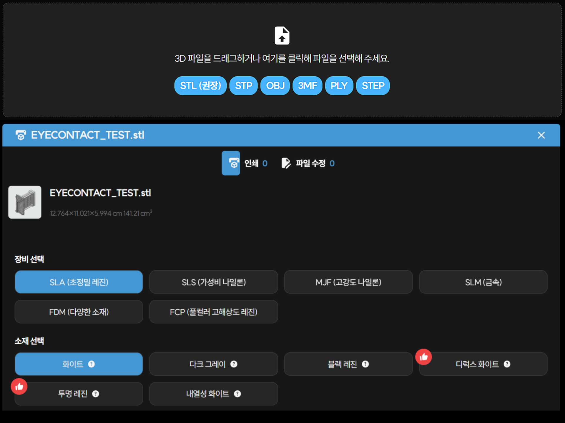 SLA - 화이트 | 내열성 | 다크 그레이 | 블랙 | 투명